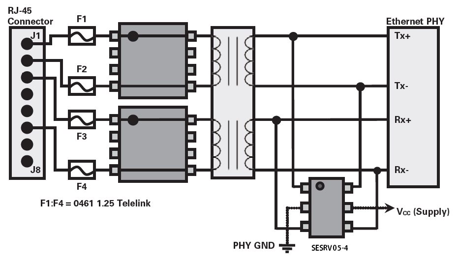 从板级设计人员的角度来看,以太网系统的设计和布局应关注CDE,并将首要重点放在从IC器件上分流能量。系统设计考虑包括添加TVS二极管阵列和耦合变压器本身。变压器电路将有助于防止共模瞬变,但高能量瞬变应具有一个接地路径。