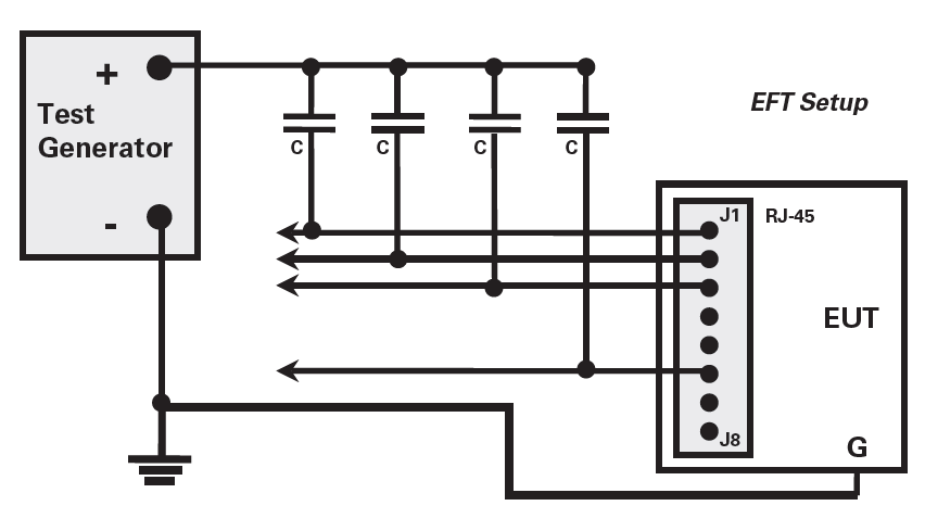 图3:以太网介面的典型EFT测试设置(仅用于快速以太网)