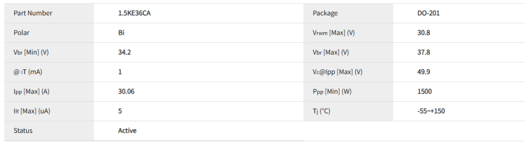 | 1.5KE36CA+ | 防护全面,余量大 | 成本较高 | 汽车/严酷环境 |