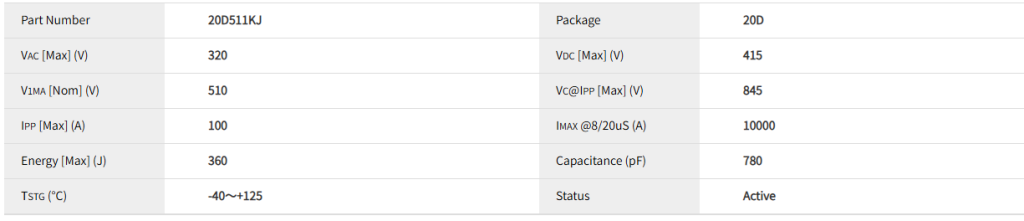 凭借其较高的电压和通流能力,20D511KJ主要应用于需要防雷和抑制操作过电压的工业及消费电子领域: