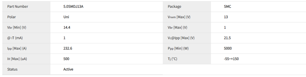 5.0SMDJ13A 是一款适用于 5V 系统 的 中等功率、双向 保护器件。其设计成功的 核心 在于: