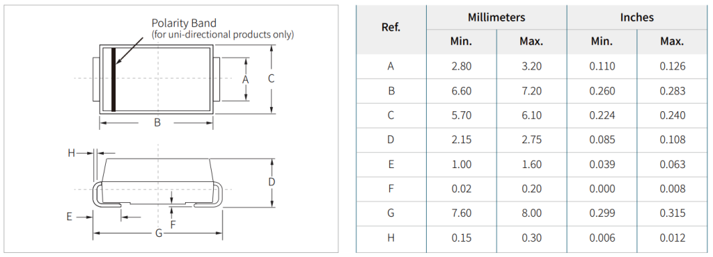 - 极性: 双向。能对 正、负 两个方向的过压瞬态进行吸收和钳位。