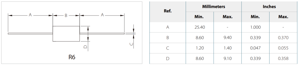- 击穿电压 VBRVBR: 通常在 53.3V ~ 58.8V(@IT, 测试电流通常为1mA或5mA)。这是二极管开始显著导通的电压点。