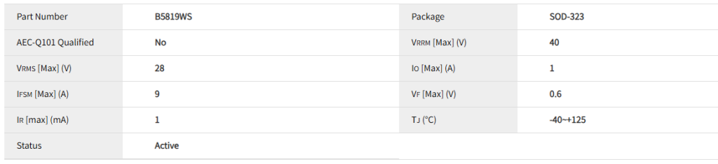 - 关键参数是结电容(Cj): B5819WS的结电容通常在几十pF量级,会影响高频性能。频率越高,对结电容要求越苛刻。