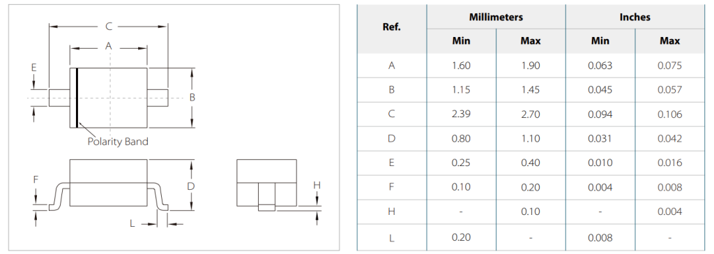 - 极性: 阴极由封装上的色带标识