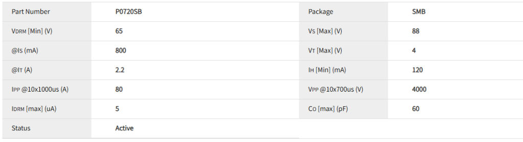 - 高浪涌吸收能力: P0720SB具有较高的浪涌电流吸收能力,足以应对医疗环境中常见的瞬态干扰,提供坚实的保护屏障。