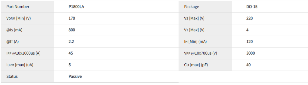 - P1800LA系列广泛应用于需要可靠浪涌保护的通信和工业设备中: