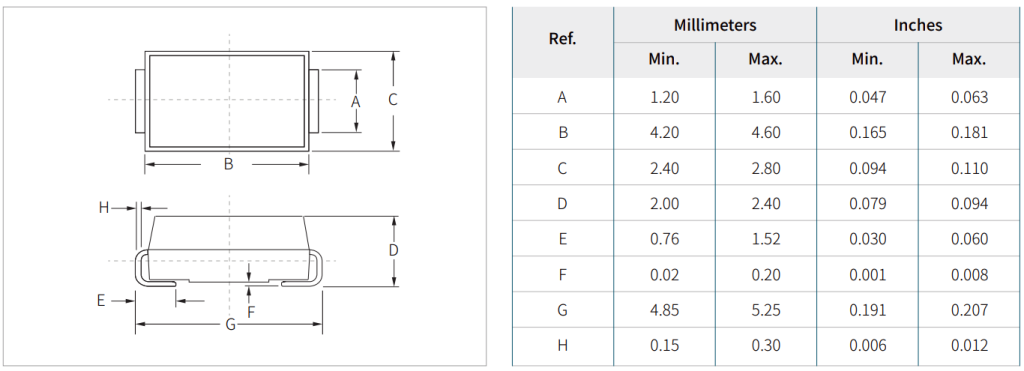 - 封装: SMA,便于表面贴装,适用于空间受限的场合。
