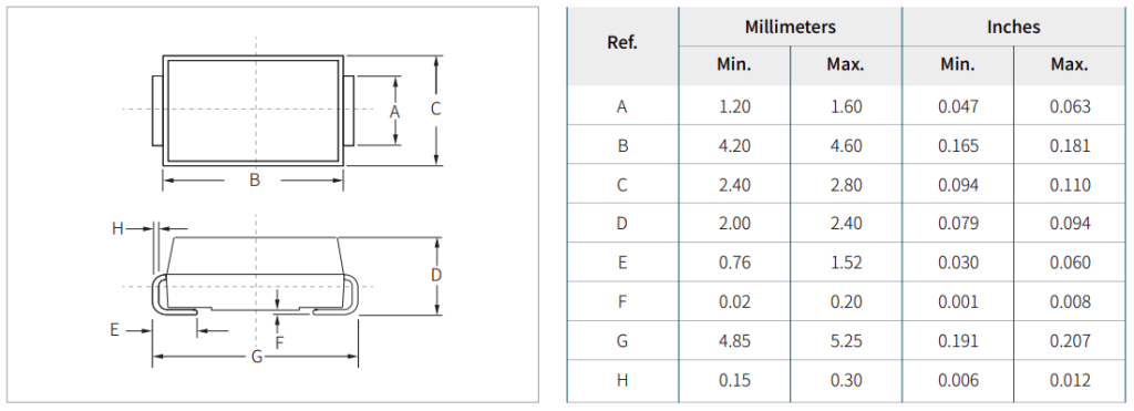 - SMA: 表示封装形式为SMA(DO-214AC),是一种表面贴装封装,尺寸较小。