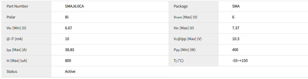 - SMAJ6.0CA 是一款适用于 5V系统 的通用型双向瞬态抑制二极管。