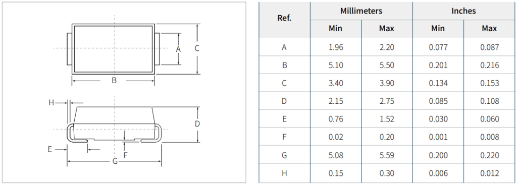 - SMBJ系列: 表示其封装为DO-214AA(SMB),是一种表面贴装器件,功率等级为600W(10/1000μs脉冲)。