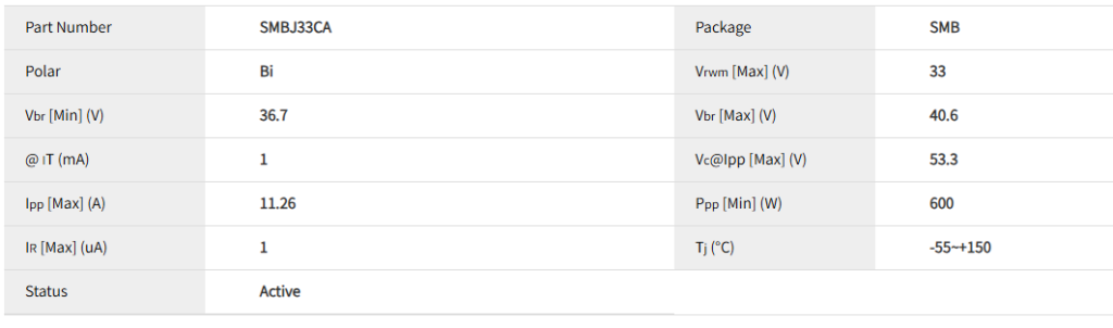 - 极性说明:SMBJ33CA是双向器件,接线时无需区分方向,直接并联在电源正负极之间即可