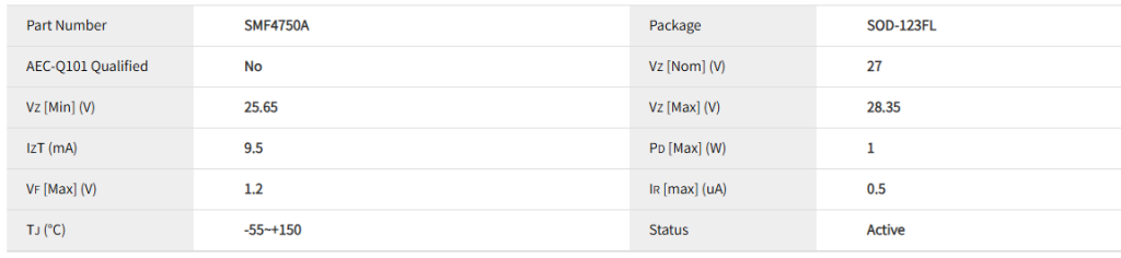 SMF4750A系列产品采用SOD-123FL封装,每卷3,000个,如需了解产品详情,请访问https://semiwell.com/product-zener/smf4750a/#pro2; 现提供样品,您可向全球各地矽门微Semiwell的授权经销商索取样品。